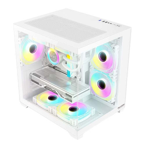 Acest PC Gaming Ambra Alb Glacier Ryzen 7-5800X pana la 4.7GHz, 32GB DDR4, 1TB SSD, RTX5060 8GB GDDR7, Windows 11, Wi-Fi 6 este construit pentru gaming modern si multitasking, oferind un echilibru excelent intre performanta, racire si design. Carcasa Ambra Alb este echipata cu 5 ventilatoare ARGB incluse, controlate prin controller si telecomanda, pentru airflow optim si un aspect spectaculos. Procesorul AMD Ryzen 7-5800X, cu frecventa boost de pana la 4.7GHz, impreuna cu memoria 32GB DDR4, ofera rulare fluida in jocuri si aplicatii solicitante. Placa video NVIDIA GeForce RTX5060 8GB GDDR7 asigura performanta grafica ridicata si o experienta vizuala moderna. Sistemul foloseste GlacierView240, adica racire pe lichid AIO cu display de 4 inch complet customizabil, pentru temperaturi stabile si functionare eficienta. Placa de baza B55M K ofera stabilitate si compatibilitate buna, iar stocarea pe 1TB SSD asigura incarcare rapida si raspuns excelent. Sursa 750W 80+ Bronze garanteaza alimentare stabila si eficienta. Windows 11 este preinstalat, iar Wi-Fi 6 este inclus pentru conectivitate moderna.