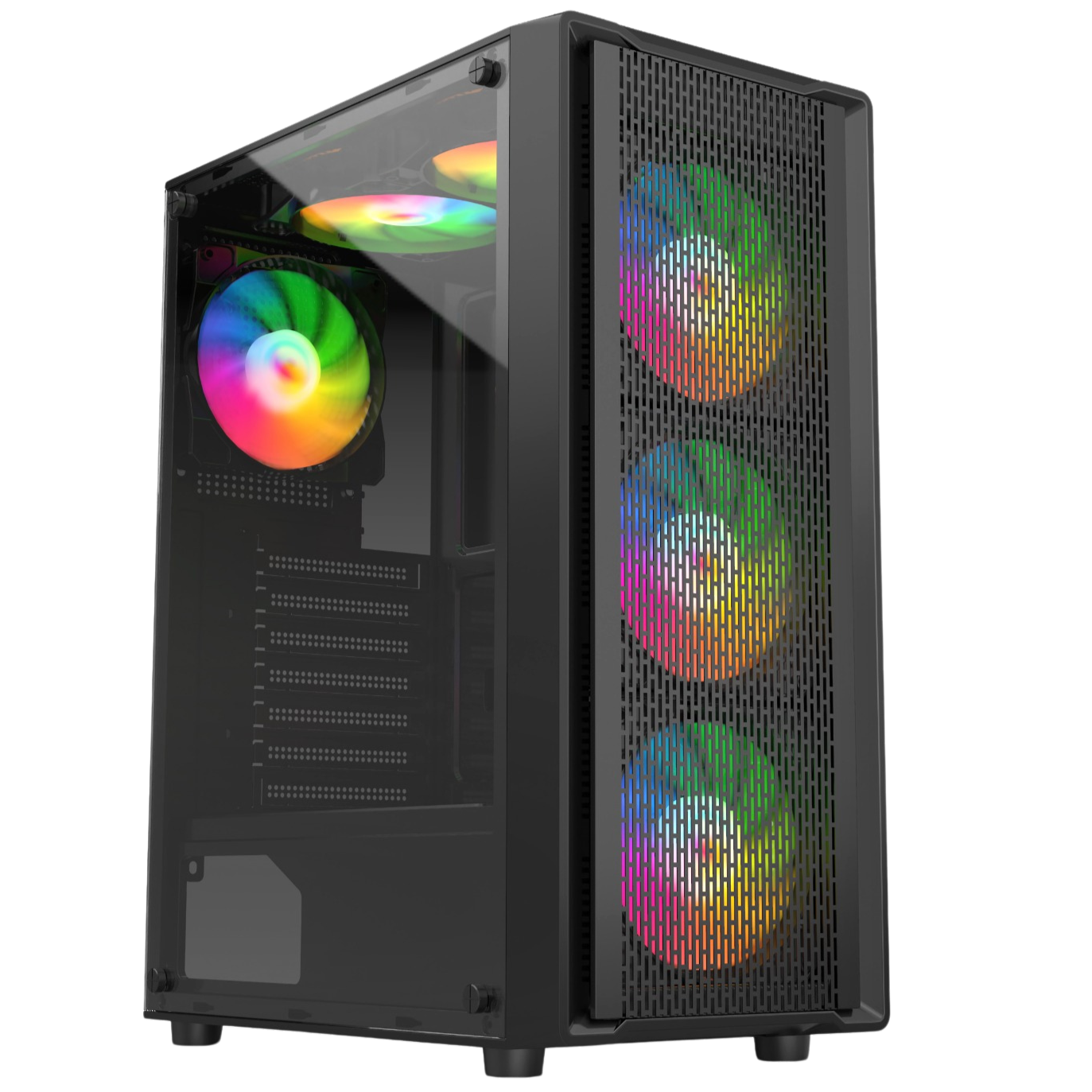 Carcasă ProGaming Dune Black – Design atrăgător cu panou lateral din sticlă securizată și iluminare ARGB.