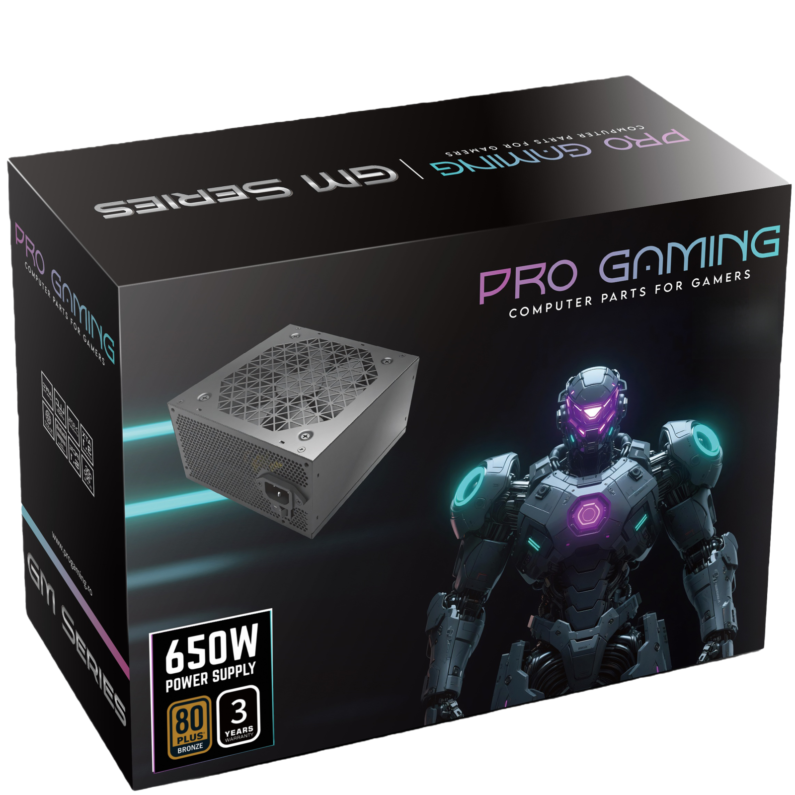 Sursa ProGaming 650W 80+ Bronze este o unitate de alimentare fiabilă pentru sisteme de gaming, cu rail +12 V puternic și topologie DC to DC pentru tensiuni stabile și eficiență ridicată. Cu design complet negru, cabluri plate și ventilator silențios de 120 mm cu control termic, sursa asigură un interior curat al carcasei, răcire eficientă și protecții multiple pentru componente.